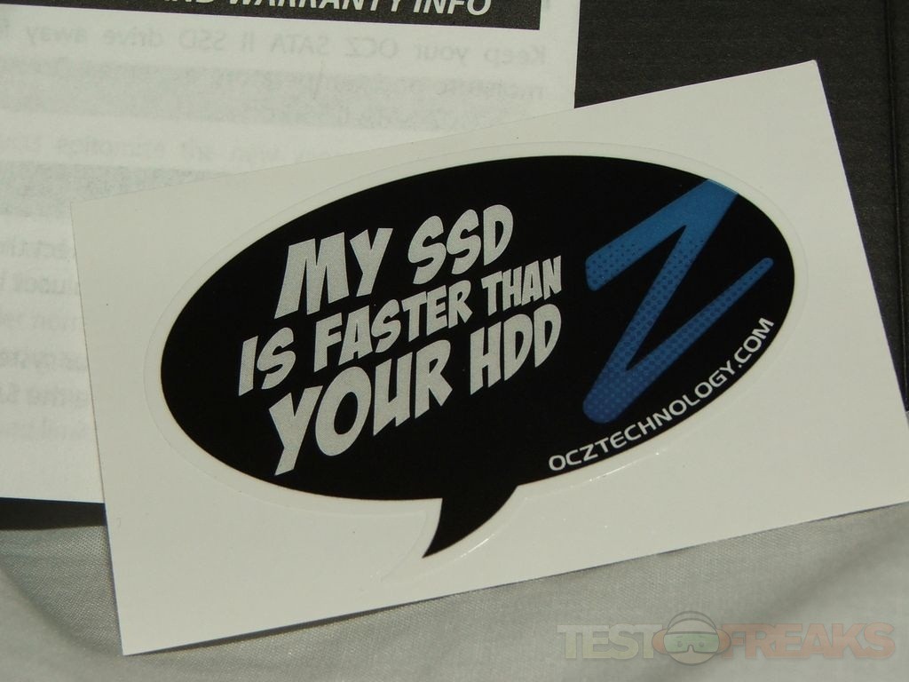 Inside is actual a presentation style box that opens to reveal the drive in an anti-static bag along with documentation and a cool little sticker along with a small bag of screws: