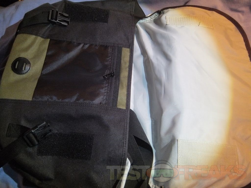 So the main flap is held down with the clip buckles that we saw, but it’s also held down with velcro strips on the underside of the flap. So if you’re in a hurry and forget to clip it shut it should still stay closed for you.