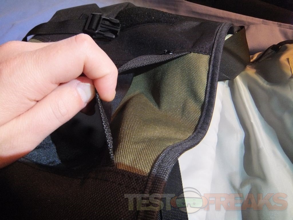 On the front flap you’ll find the Pakuma logo and two clips to hold the flap down. I couldn’t find what the bag is exactly made of but I would think it’s nylon. The tags do say the lining is 210D nylon and it says that both the inner and outer surfaces of the bag are water resistant. Overall the bag feels nicely made, the material is thick and it feels durable.