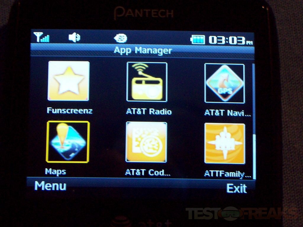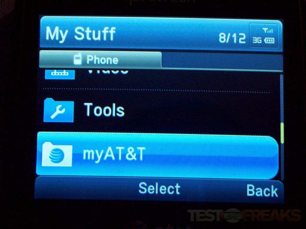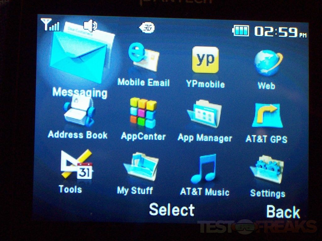 Pressing the Menu button you’ll be greeted with a graphical menu with icons representing everything. Here you’ll find choices for Messaging, Mobile Email, YPMobile, Web, Address Book, AppCenter, App manager, AT&T GPS, Tools, My Stuff, AT&T Music and Settings. I think most of those are self-explanatory but we’ll take a closer look at some of them.