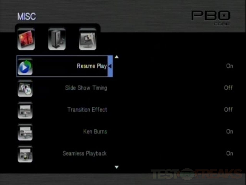 Under Setup you’ll find choices for System, Misc, Audio, Video and Network. They’re all pretty much self-explanatory I think.
