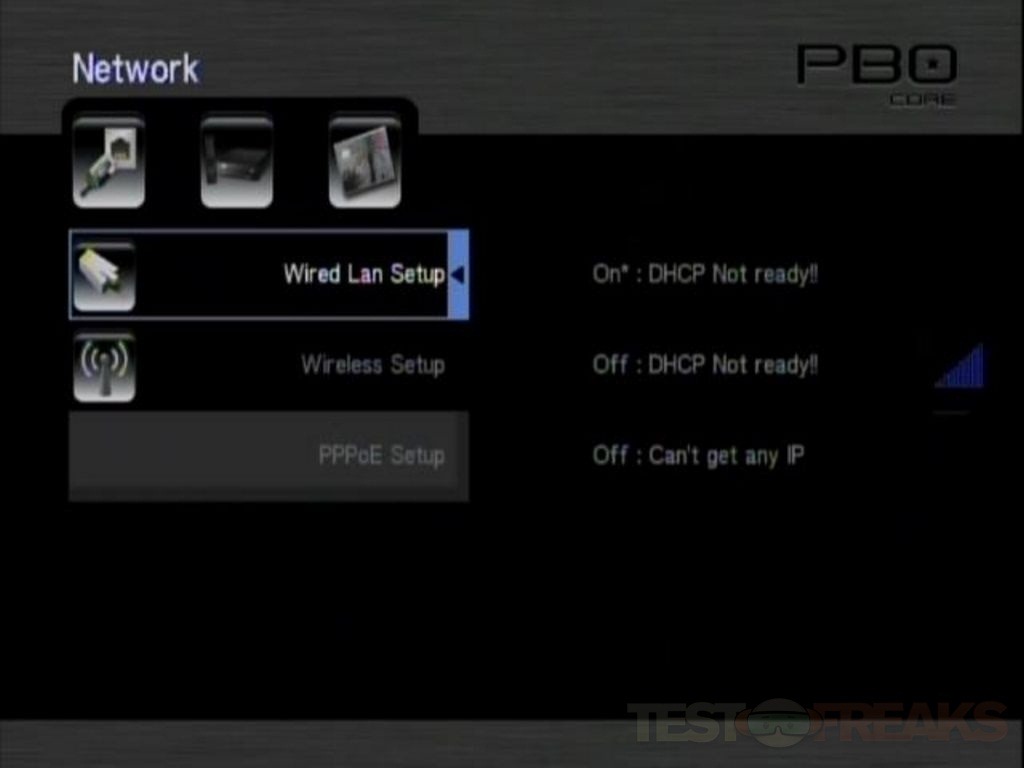 You can connect the PBO Core using the Patriot wi-fi adapter, or you can connect over Ethernet if you’ve got the cabling around. The wi-fi adapter can be configured via the Setup interface, and plugged into one of the available USB ports. Using the wi-fi adapter though will take up a USB port leaving you with only one free on the back or the front. I don’t think it’s much of a big deal though really as I think one UBS port is more than enough.