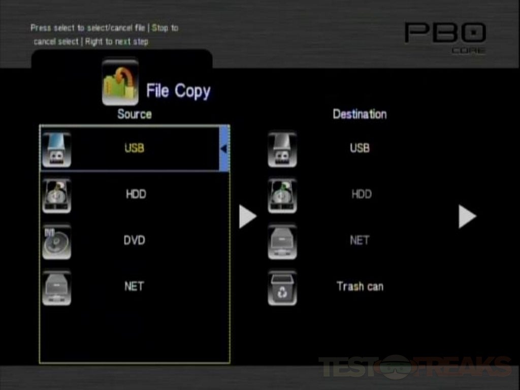 Under File Copy you’ll find several choices for ways to copy things to and from different devices like hard drive, USB, DVD and network.