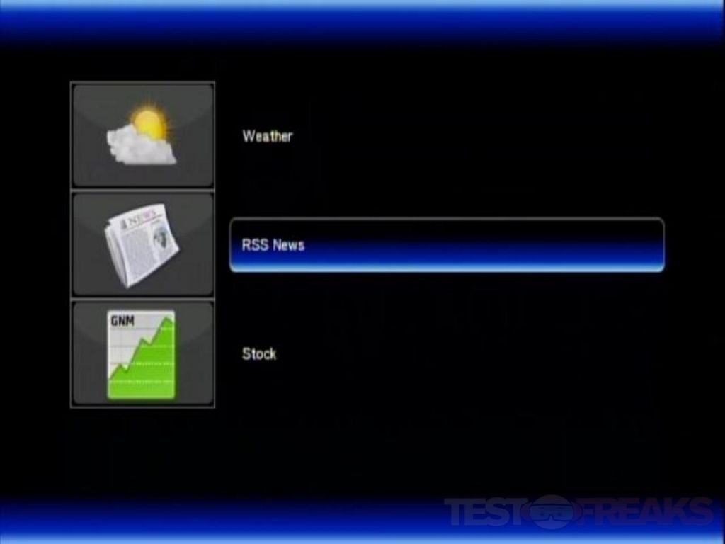 * Supports Internet Media Services (IMS) Flickr, Stocks, Video News, Video Podcasts, Weather, Picasa, RSS (+20 video feeds) and custom RSS feeds