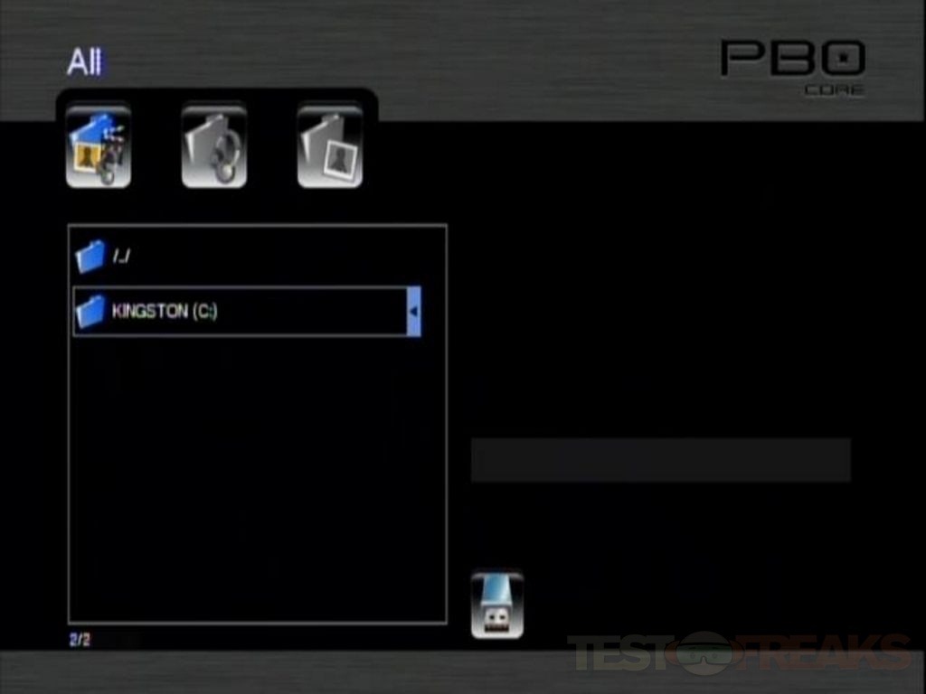 I tossed photos, music and a few movies in different formats on a USB drive to test it out. My USB drive was instantly recognized and after selecting USB the name of the drive was there, Kingston.