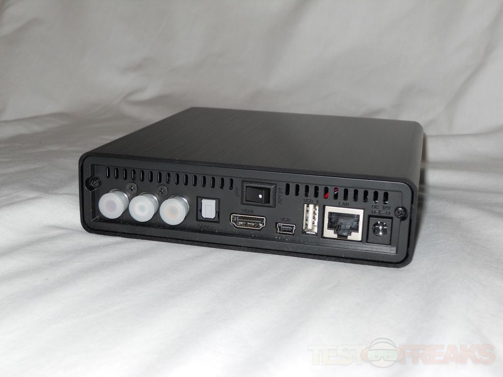 On the back you’ll see connections for audio and video in the form of RCA connections and an HDMI jack. There you’ll also find an optical connection, power connection, USB port, an ethernet connection and the power switch.