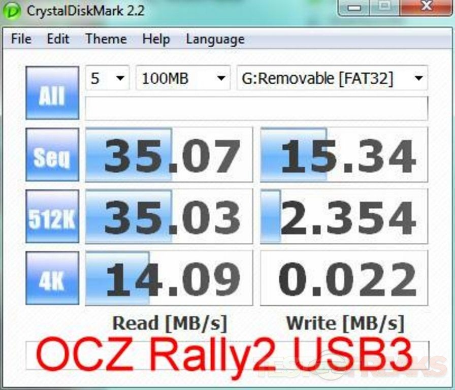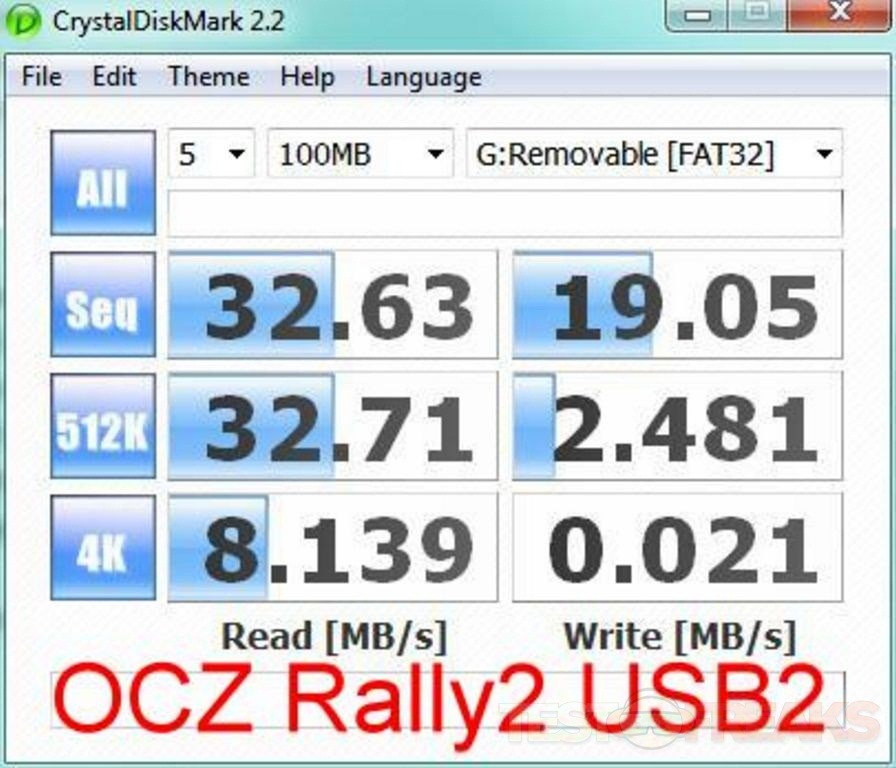 For comparison testing I grabbed another 32gb USB drive, the OCZ Rally2.