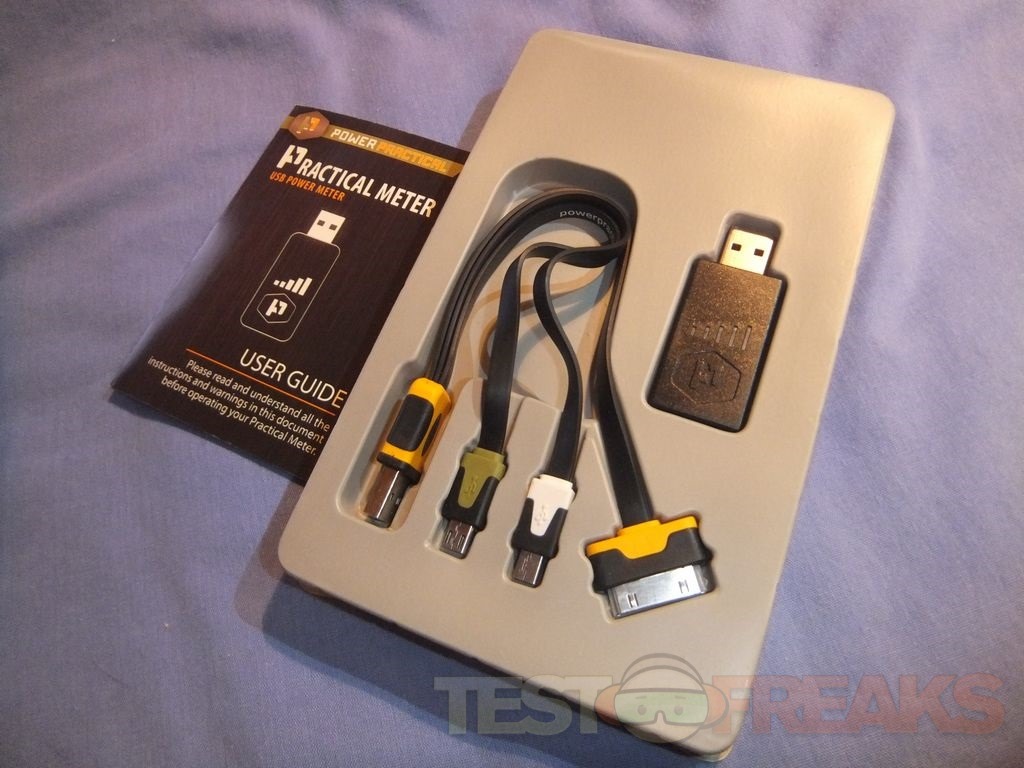 When you open the box you’ll find a plastic tray that hold the Practical Meter and a three-in-one USB fast charging cable. Under the tray is the user manual, which is just a few pages.