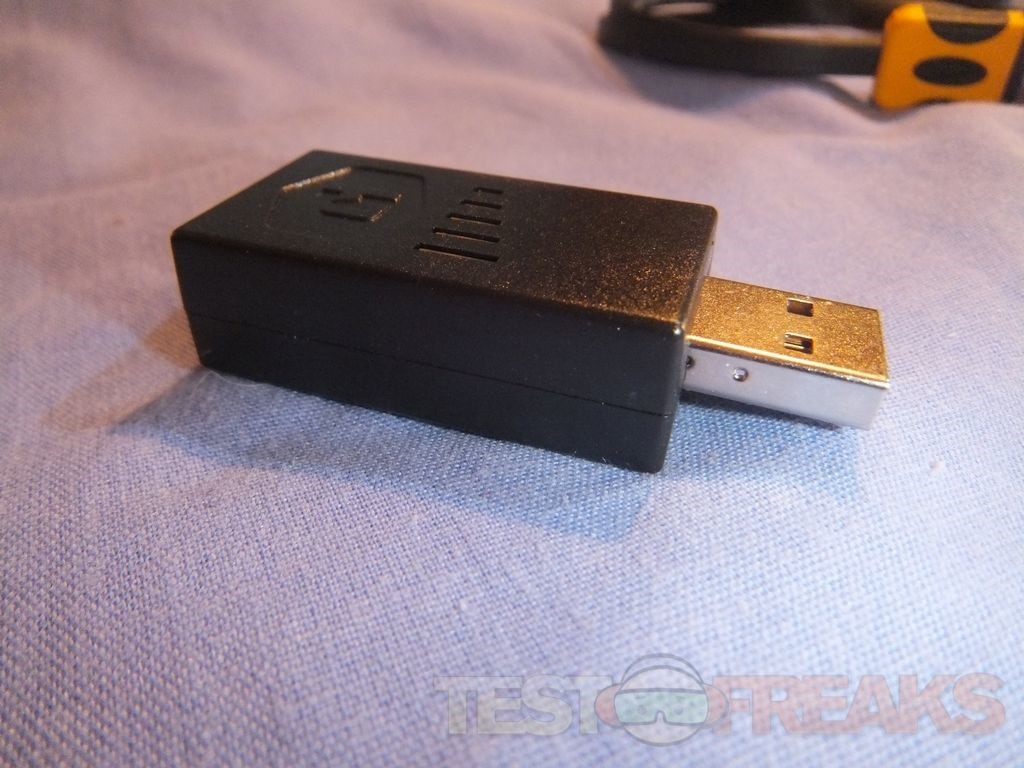 The Practical Meter is a small plastic black colored block, it very much resembles a flash drive. On the front you’ll find the logo and five bars which are LEDs.