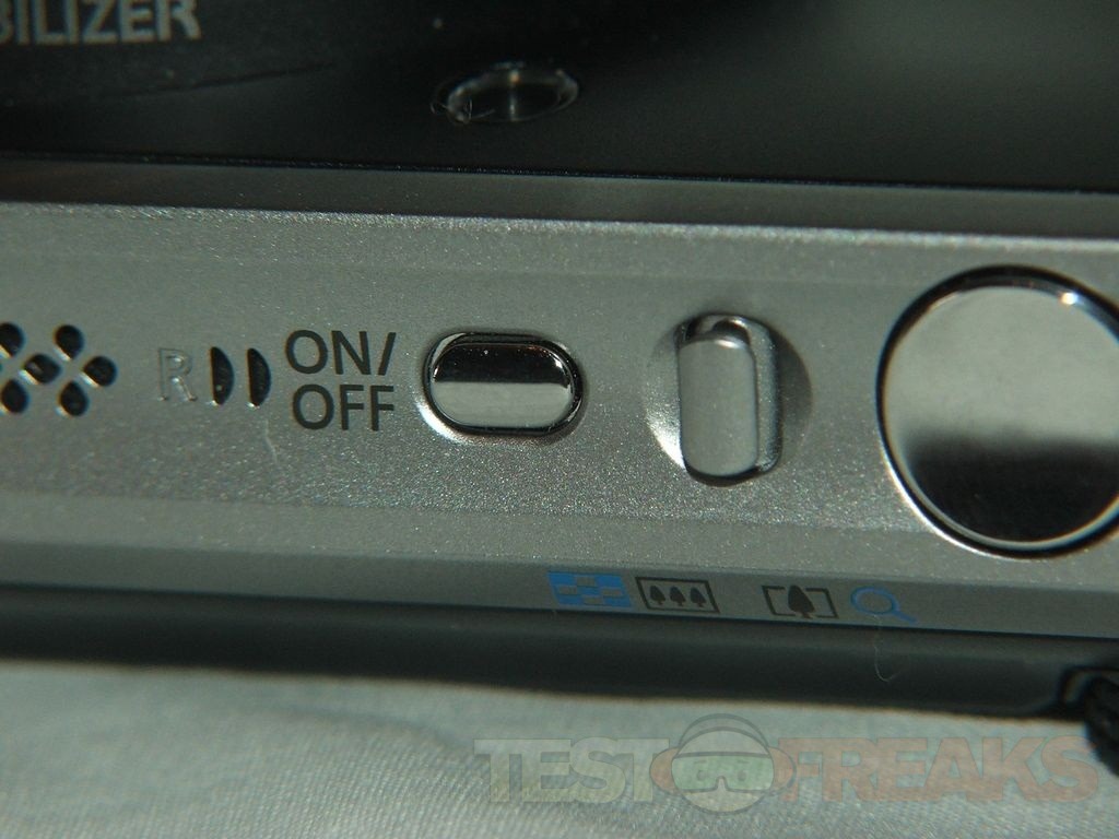 On the top of the camera you’ll find the power button, shutter button and the zoom slider and the microphone.