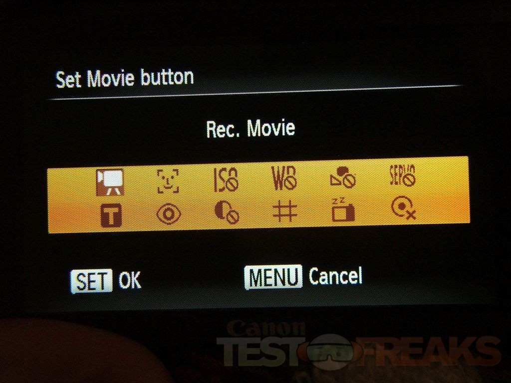 There is a set movie button as well that open another menu with opens for video recording: