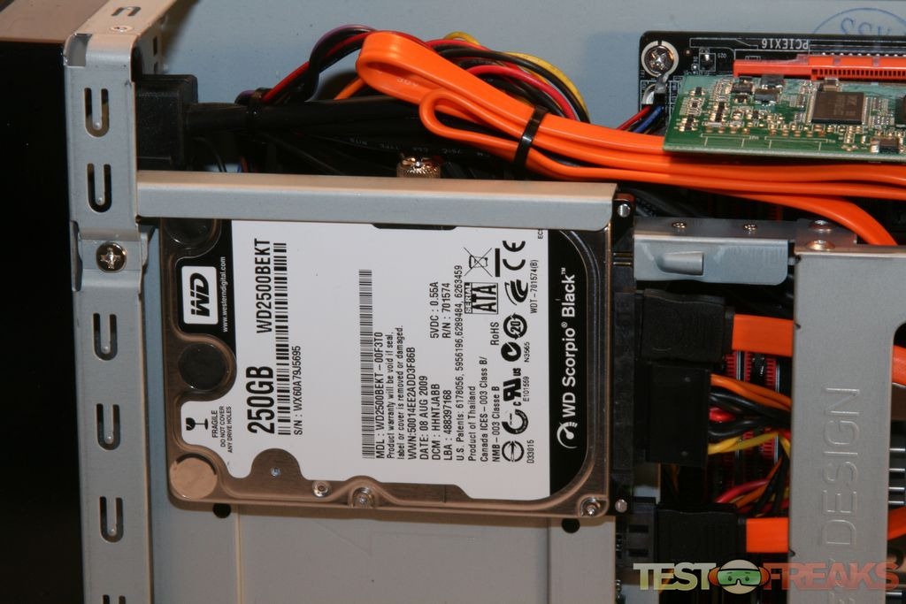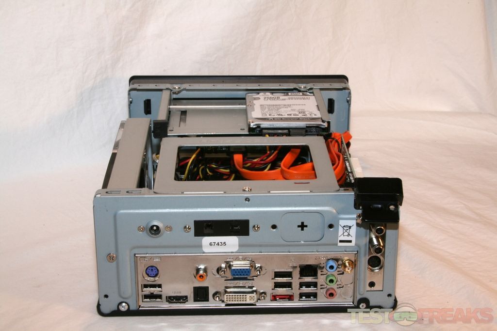 The review model we received was built with the following components: an Antec ISK 300-65 case, Hauppauge WinTV HVR-2250 Dual TV Tuner. Kingston ValueRAM DDR2 800 2048MB x 2, Microsoft 7 Home Premium OEM, Silverstone Blu-Ray Combo Drive, and Western Digital Scorpio Black 250GB 7200 Notebook Drive.