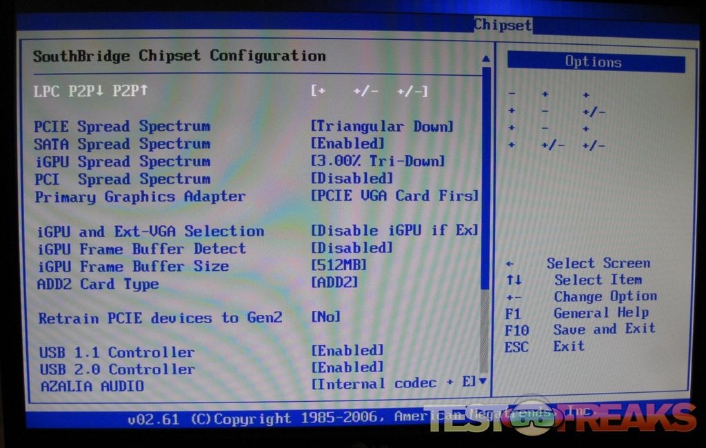 BIOS options are relatively unremarkable except for the Chipset option. From this menu screen the NorthBridge and SouthBridge Configurations can be adjusted. Under the NorthBridge Performance Options sub menu are the settings for overclocking the Echo I. Overclocking testing on the Ion platform was performed over at Anandtech and they saw modest performance gains. However if using this system primarily as a HTPC use then I don’t believe the extra heat production is worth the overclocking gains.