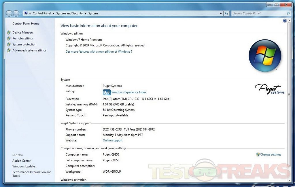 Here is the CPU-Z information on the machine. It has a Windows experience rating of 3.3 with the CPU being the weakest component. Thank goodness for the NVIDIA ION components or else this HTPC would be in trouble. All standard Windows functions are found including web surfing, word processing and email along with DVD/BD playback, surround sound processing and digital/analog TV tuner. Puget Systems provides a Windows Media Remote that comes with the Hauppauge Tuner Card package.