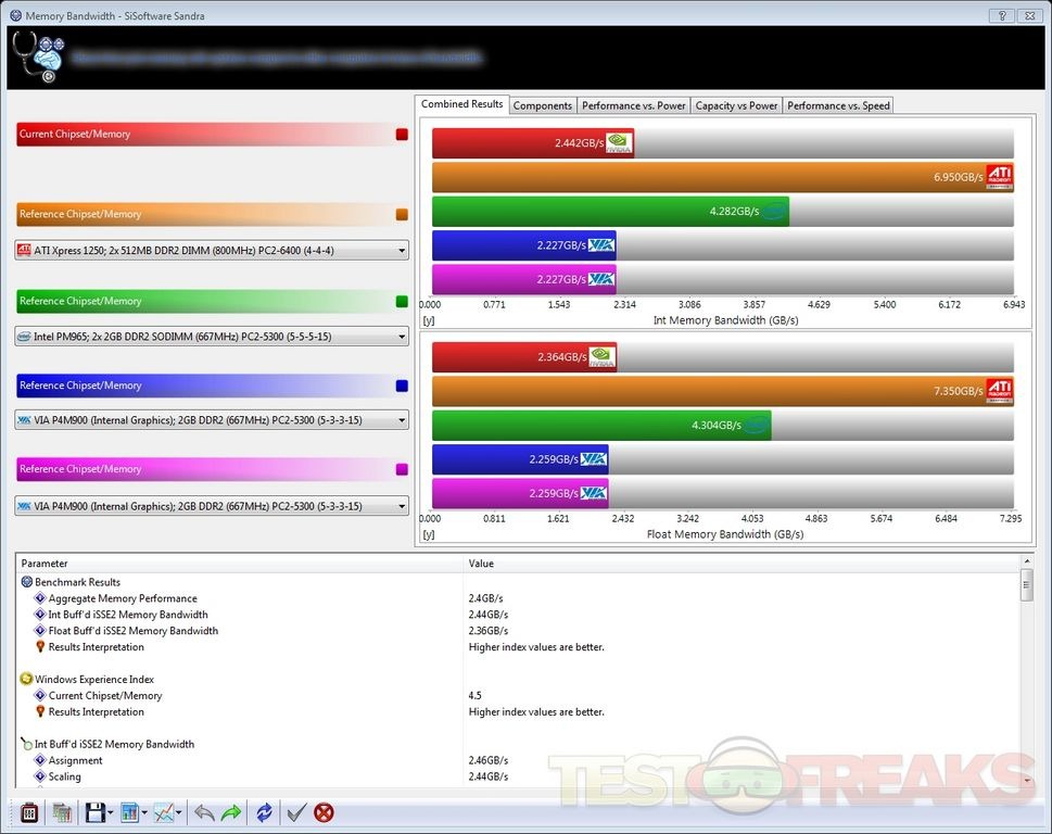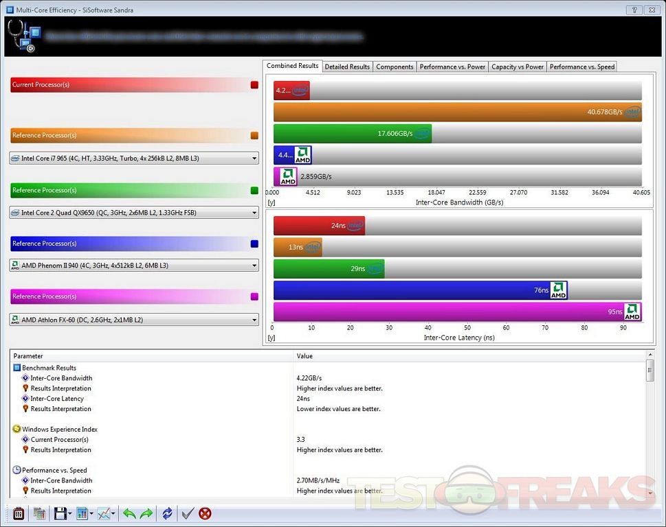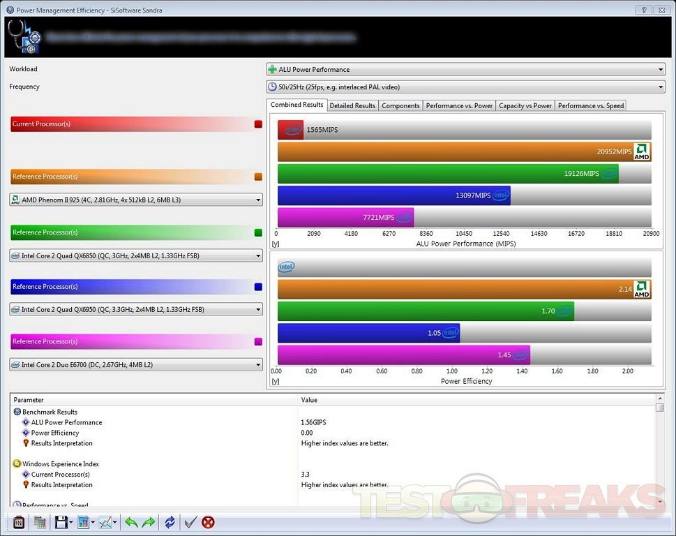 SiSoft Sanda 2010 Portable USB Edition put up these results for the following benchmarks: GPGPU Memory Bandwidth, Multi-Core Efficiency, Power Management Efficiency, Processor Arithmetic, Cache and Memory and GPGPU Processing