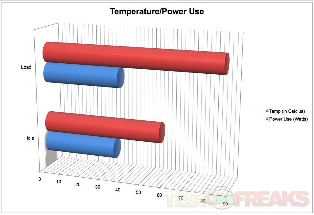 Finally we looked at the Power usage and heat production of the Echo I. Temperatures seem rather high but remember this is a passively cooled CPU. Temperatures were measured using CoreTemp 64 Bit. For power use I hooked the Echo I to a Kill-A-Watt meter.