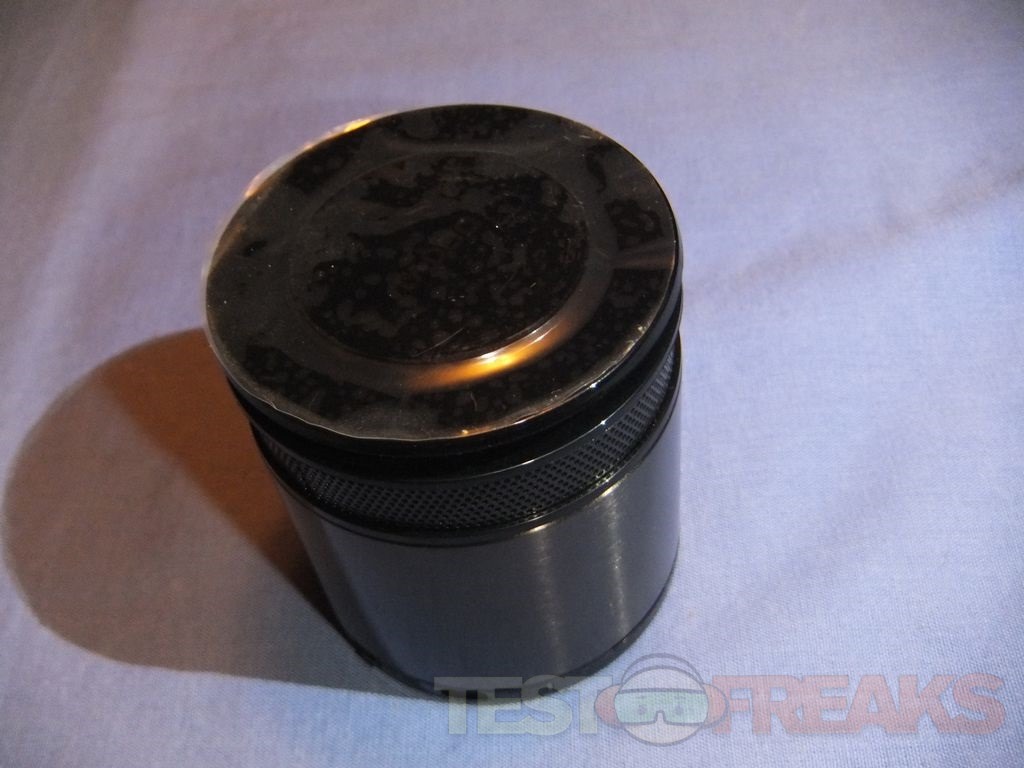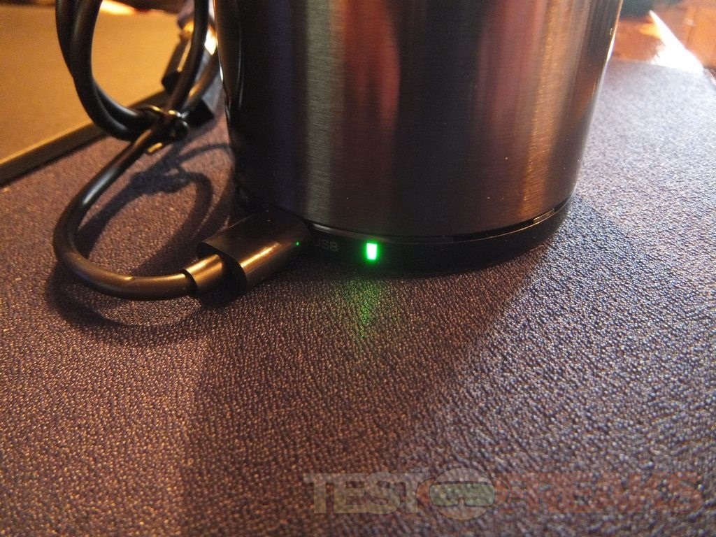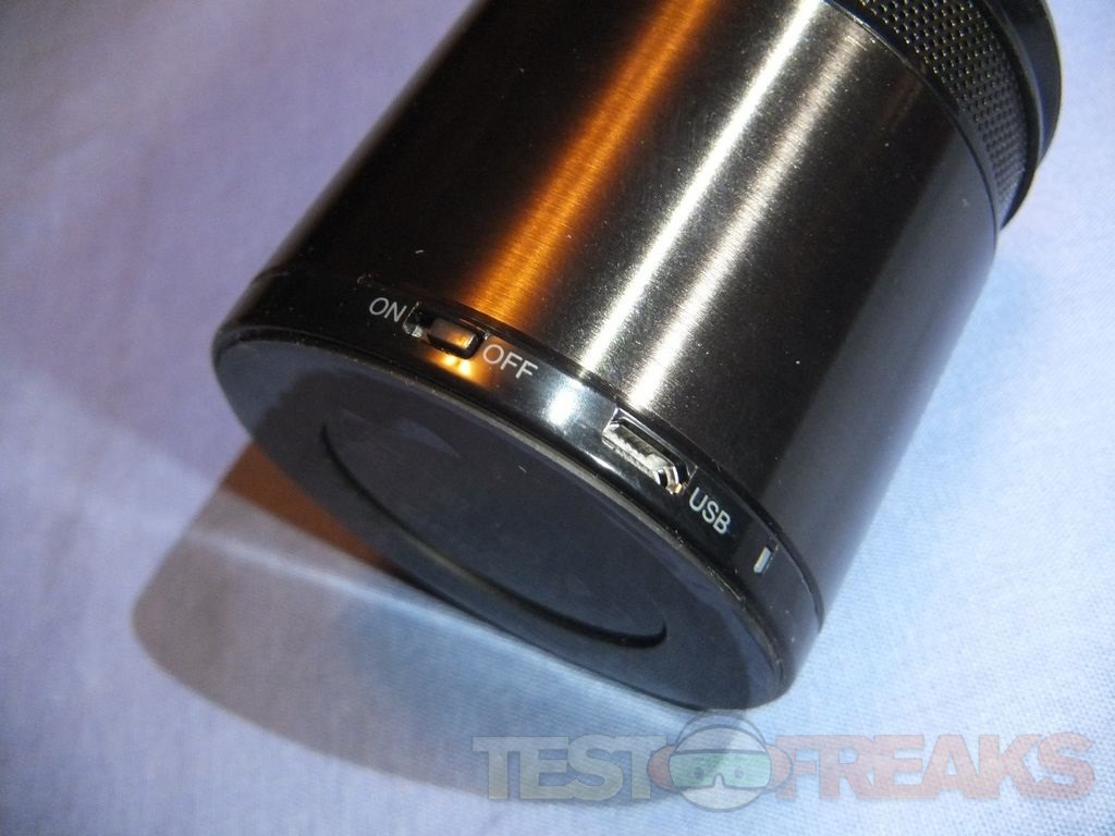 On the side at the bottom you’ll find the on/off switch, microUSB port and the indicator or status LED. From the side view you can see the brushed metal look of the speaker along with a mesh top section with an opening and then the top section with the touch controls. It’s very hard to see but there is a metallic blue part under the top section. The A3060 is also available in several colors, obviously I got black. The A3060 is a small in size yet but it’s much heavier than it looks to be, it feels sturdy and very well made.