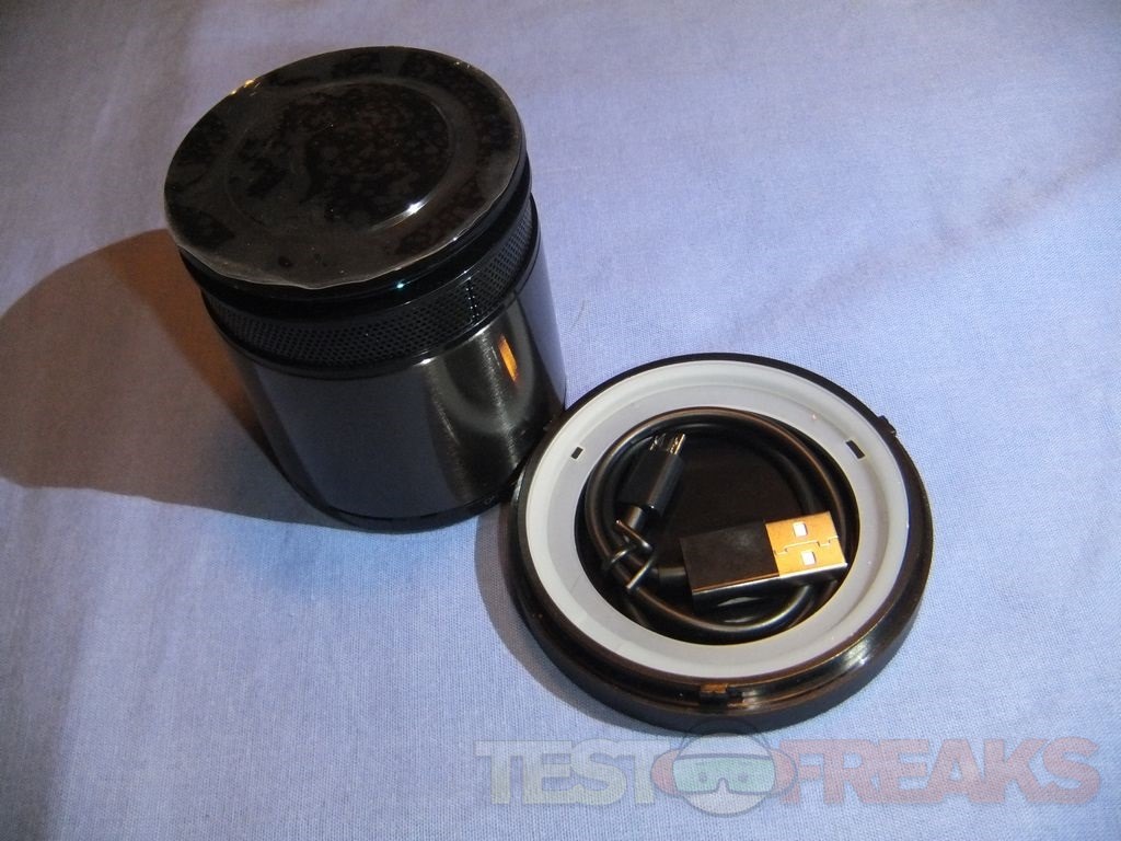 The base of the plastic container houses a microUSB style cable that’s used for charging the A3060.