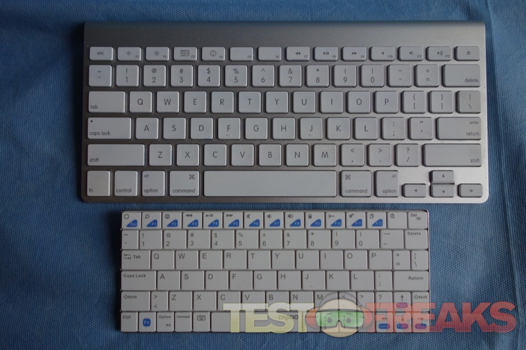 The first thing you’ll notice is the size disparity of the Rapoo keyboard versus a standard Apple Bluetooth model. It is also incredibly lightweight making it easy to throw into one’s bag for travel.