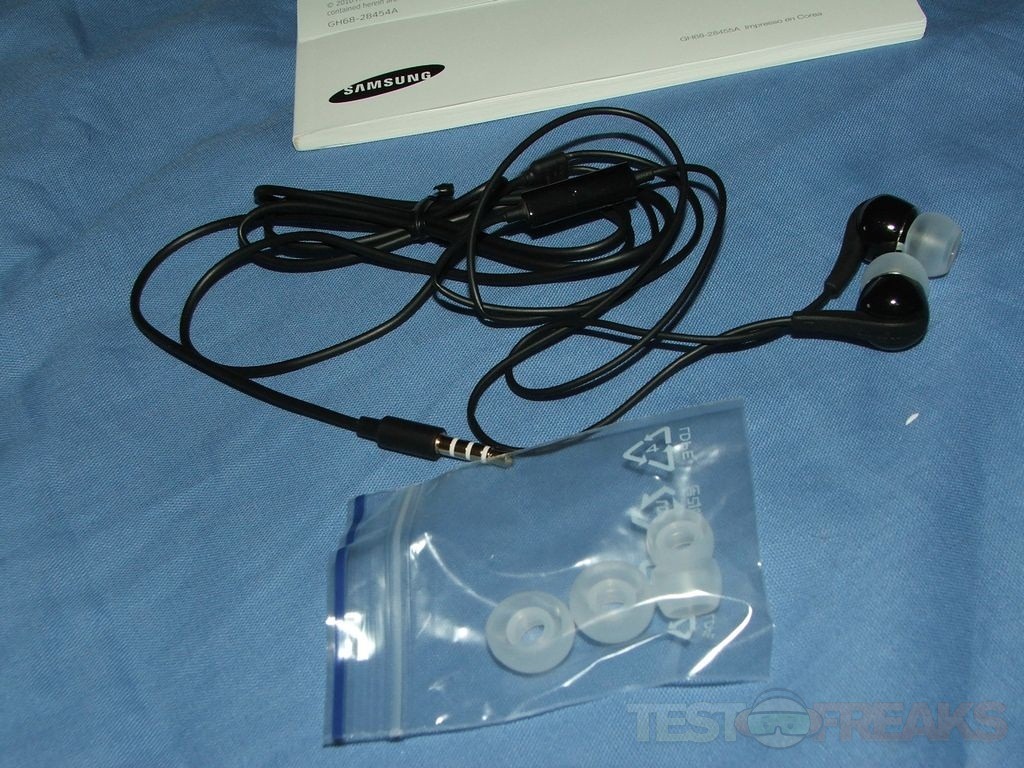 There’s several things included with the phone like USB charger, USB cable, wired headphones and extra ear buds and a lot of documentation.