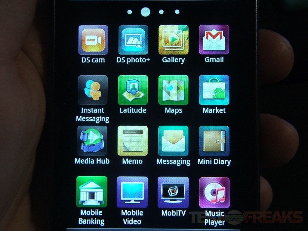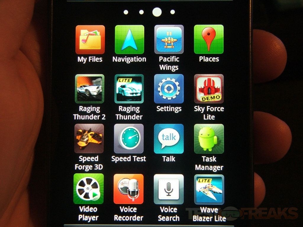 Pressing the applications button brings up three pages of app by default, on my phone here I have four pages because I added quite a few things to test the phone and other devices. I like the interface but what bugs me is that it doesn’t wrap around, meaning you can’t slide to the left or right and wrap around.