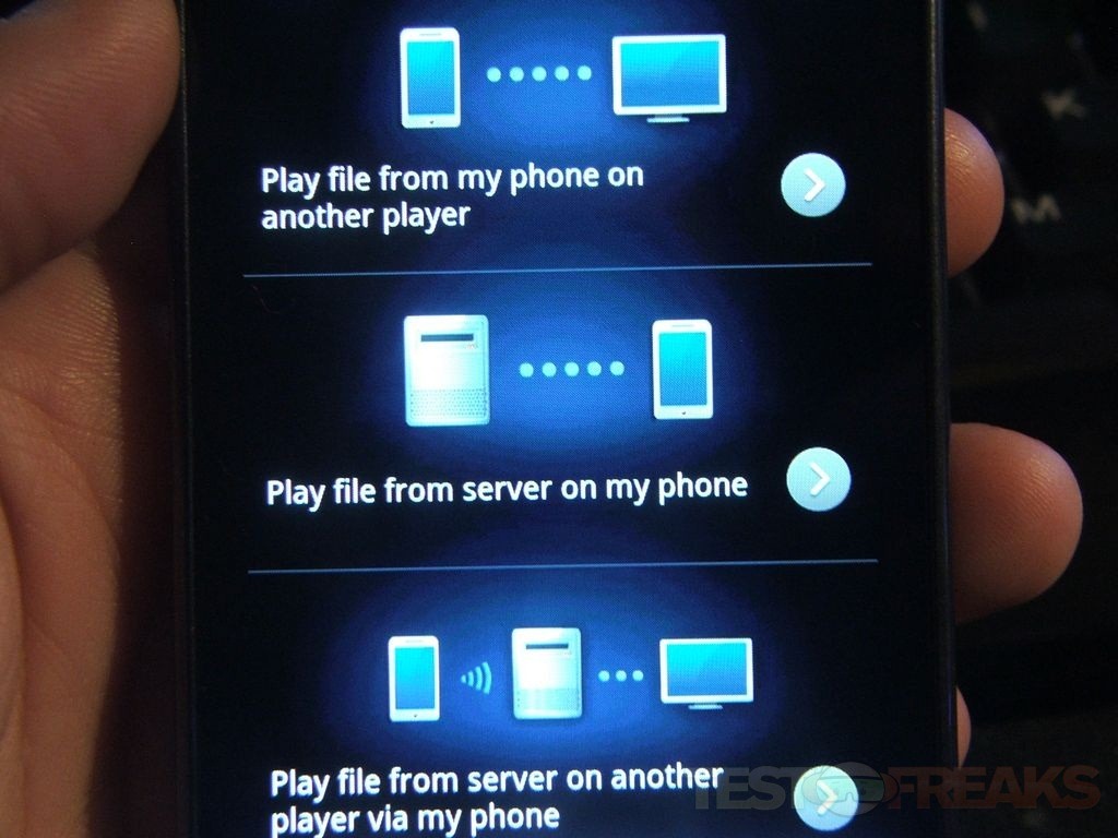 There’s another app included called AllShare that allows you to stream from phone to another player, or play a file from a server or play a file from the server on another player.