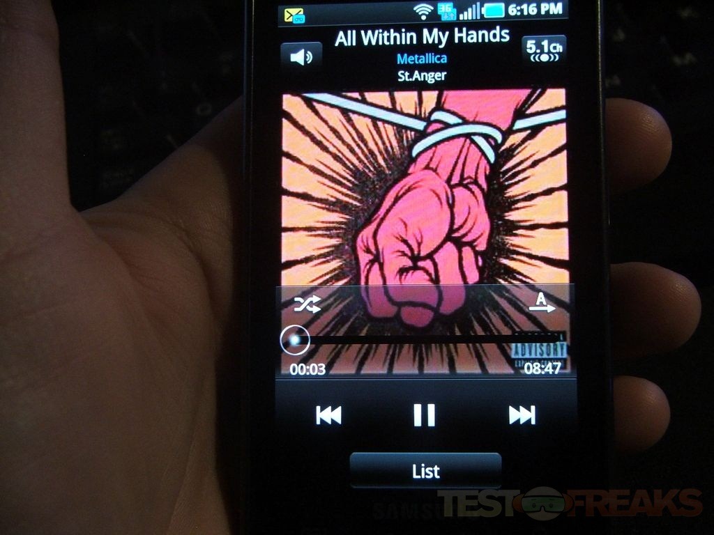 Music and Movies are great. One thing I noticed is that the Captivate is capable of 5.1 surround sound, but only through headphones. The screen for gaming, movies and just using it in general is just beautiful, the 4” AMOLED screen is just excellent overall.