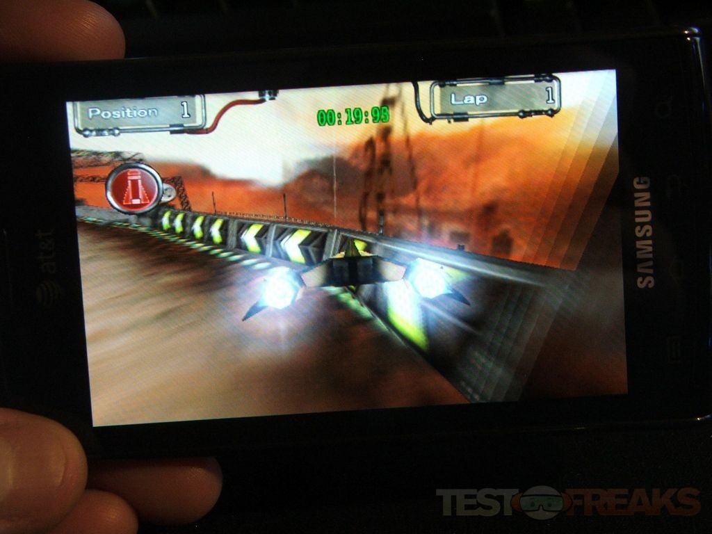 The Captivate has a 1Ghz processor in it and it handles 3d gaming easily, the graphics are great and the action is smooth.