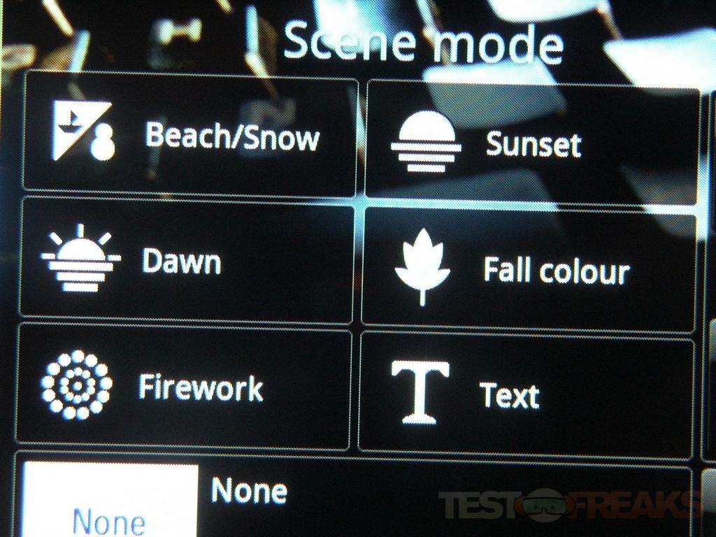 From the left side menu you can access Scene and Shooting modes:
