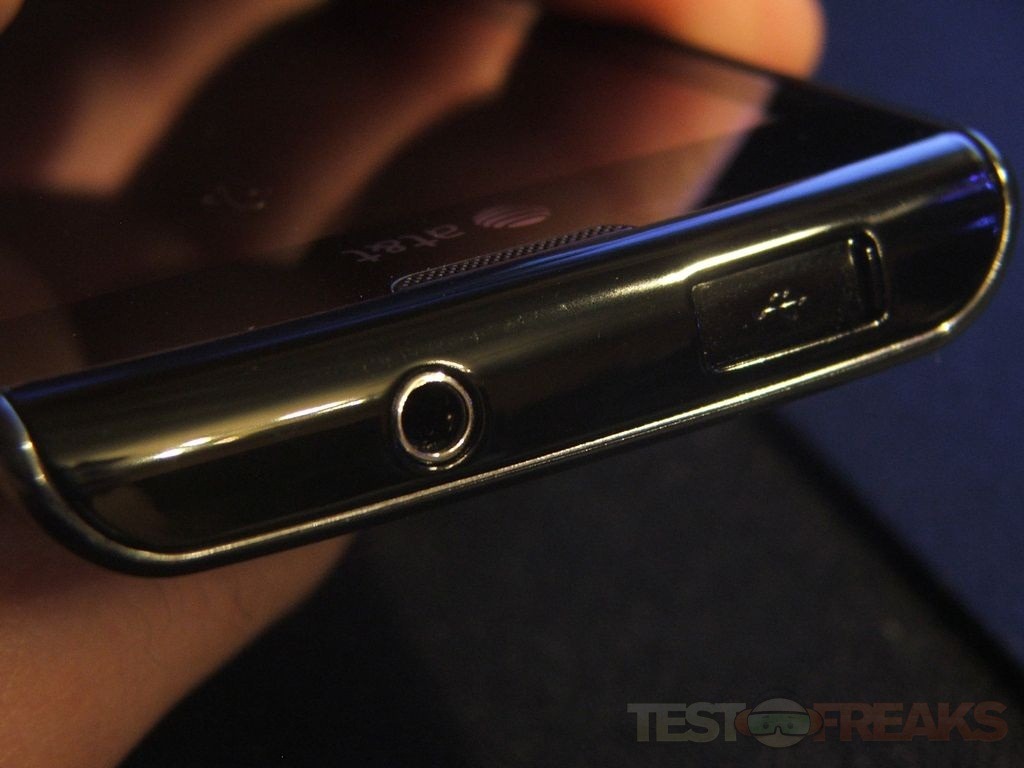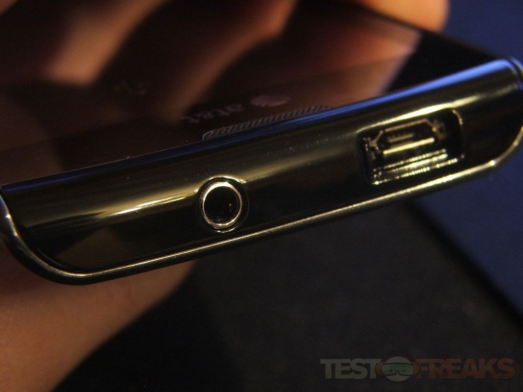 On the top of the phone is the audio jack and the micro USB port which is behind a little sliding door.