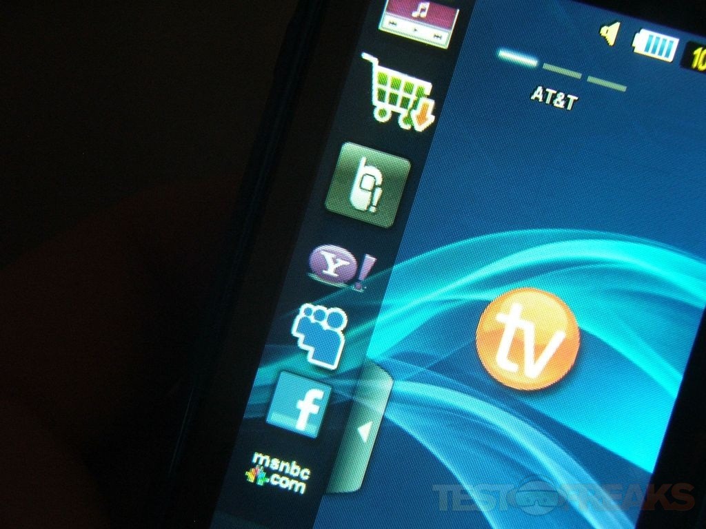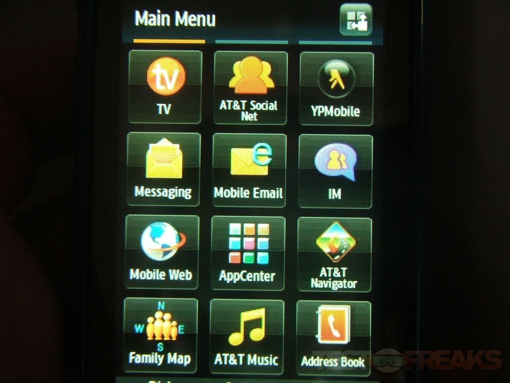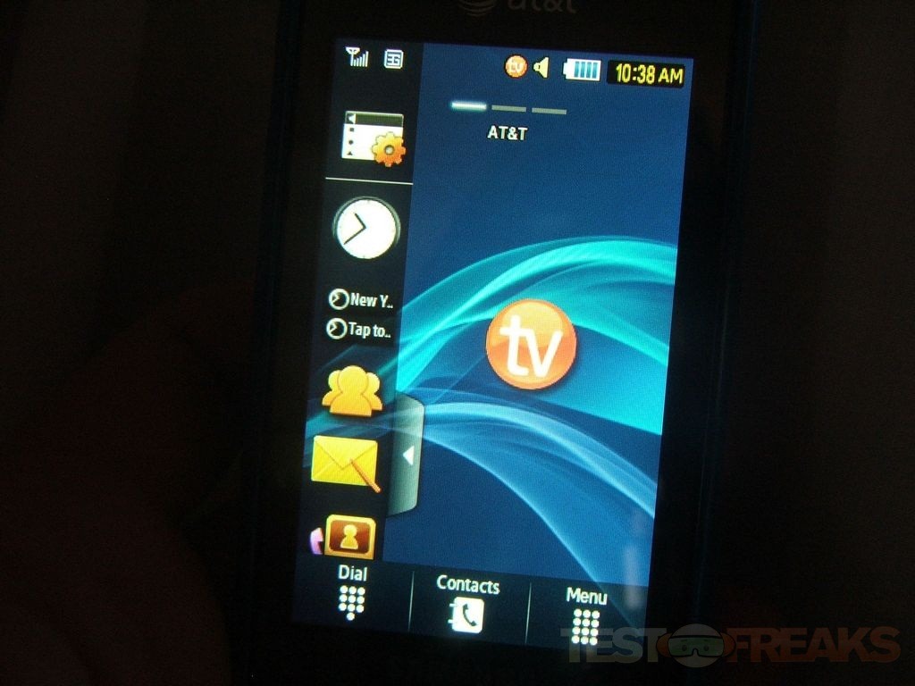 Pressing the menu button brings up three panels with a lot of stuff on them including a lot of AT&T junk on it.