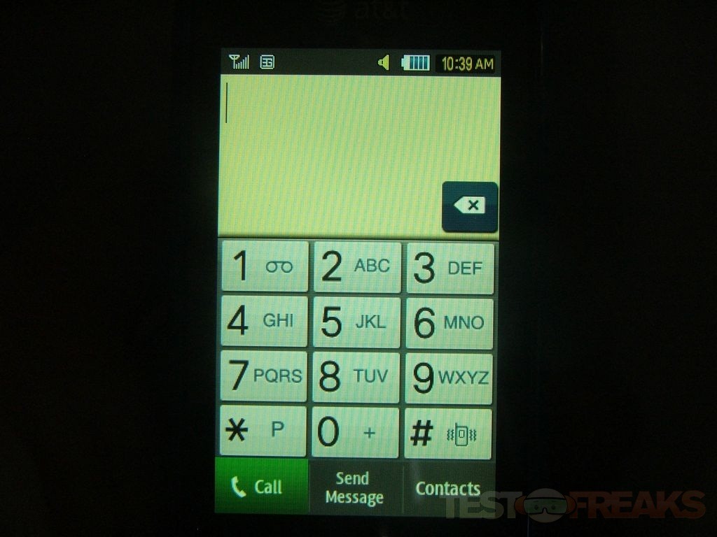 The dialer takes up half of the screen. It’s on AT&T so I had no problems with signal strength, in Pittsburgh AT&T works fine. Call quality is very good. In fact Samsung sent me an already activated sim card and it turns out that it was someone elses number and apparently they owe some money so I got quite a few calls from collection agencies and Spanish speaking people, which was interesting to say the least.