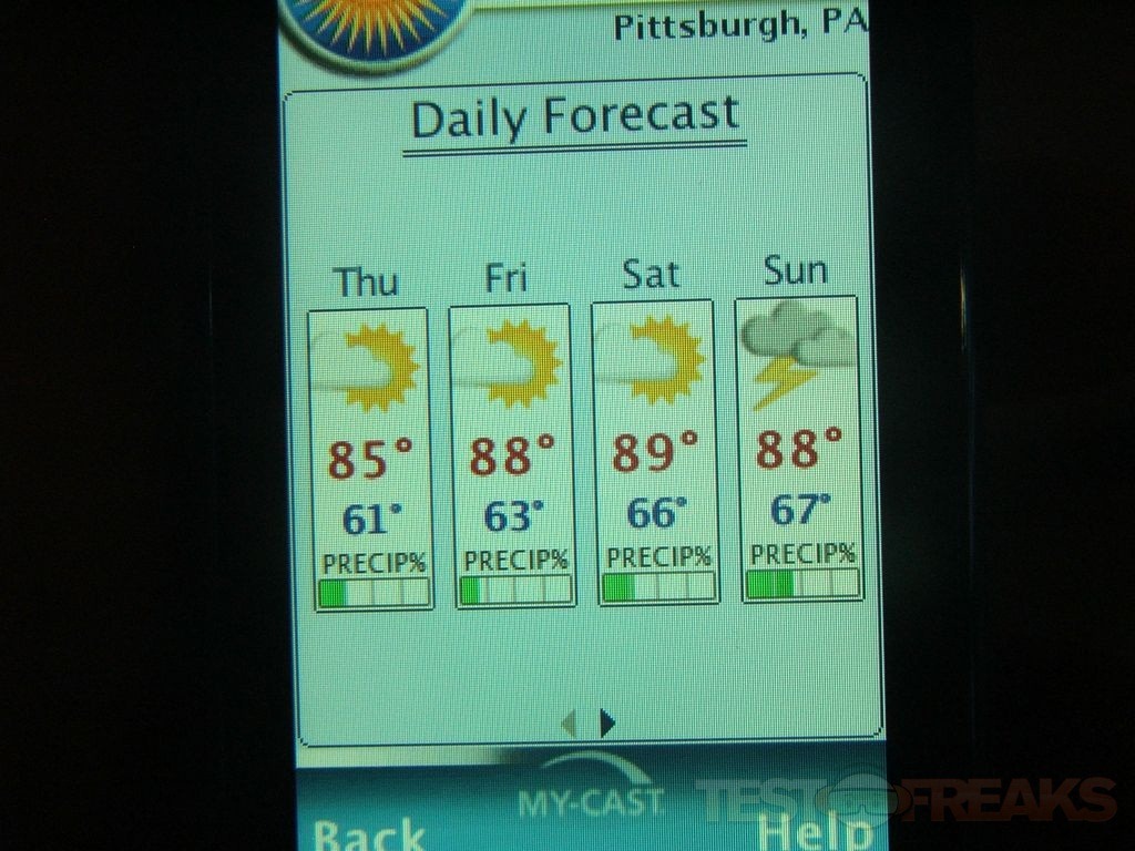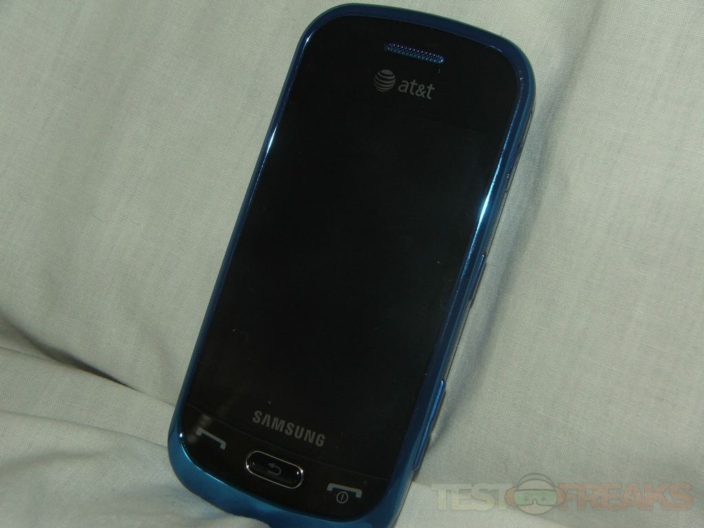 The phone itself is small and portable, it’s a full touch screen phone, no hardware keyboard. The phone should easily just slip right into your pocket, it only weighs a few ounces so you won’t even notice it really. Below the screen you’ll find three buttons for answer, end call/power and a back button in the center.