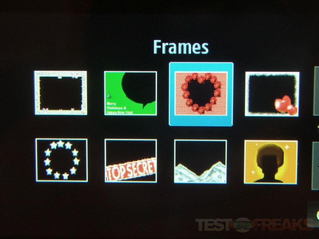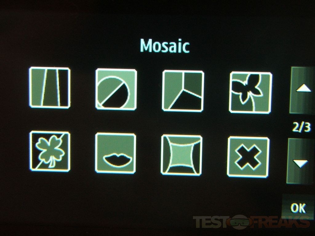 The mosaics add a creative touch to things, and so do the frames I guess. I really like the mosaics actually, at least to play with for a few shots. The only issue is that when you use mosaics or frames it drops the resolution down to 320×240, so they’re cute but not very useful.