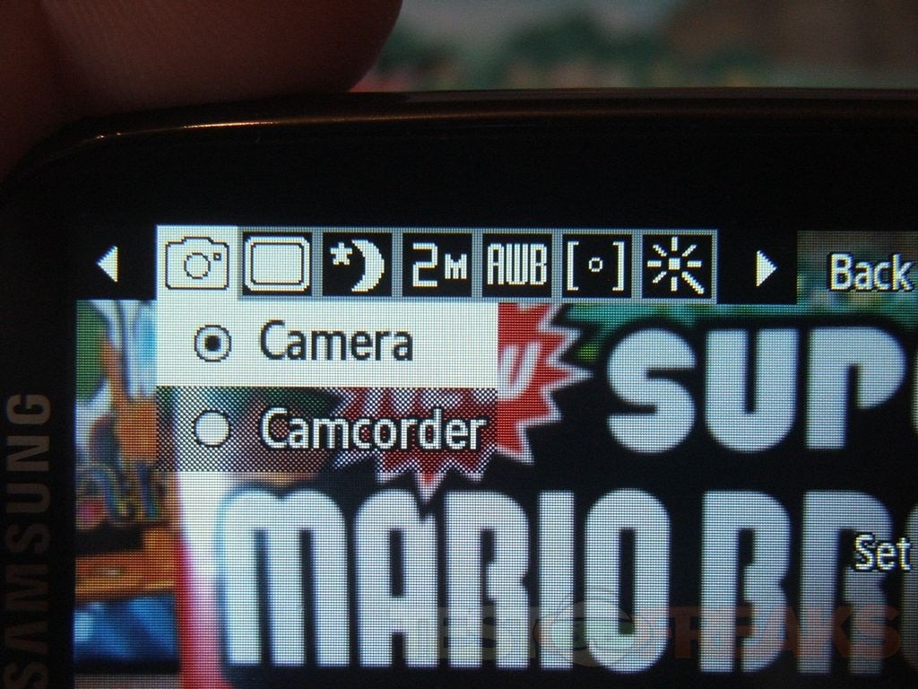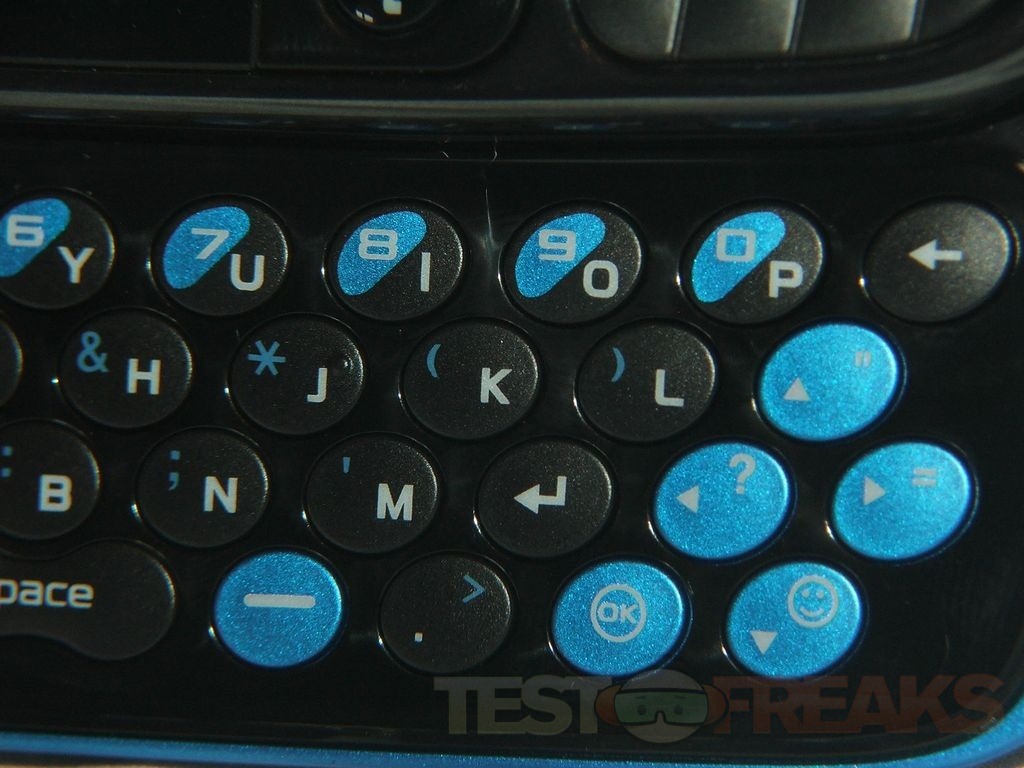 Below the screen you’ll find buttons for the screen, directional pad, answer and end keys along with clear and messaging buttons. The directional pad is shortcuts as well, press right and the camera opens with special frames, push up for call history, push left to create a message, then down is mobile backup. Pressing the center OK button will open favorites to which you can add your own.