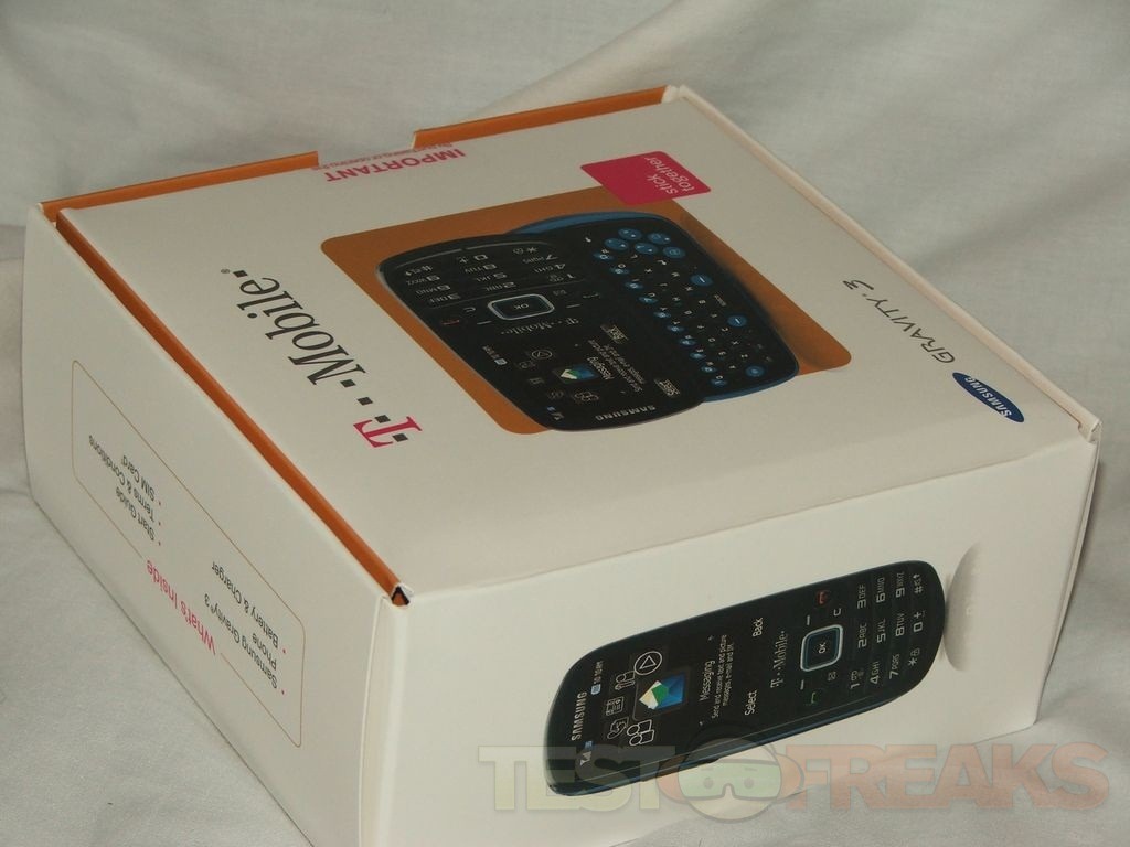 The Samsung Gravity 3 comes in a box similar to the other ones I’ve already reviewed. Once you open the box you’ll find documentation, charger, battery and the phone itself.