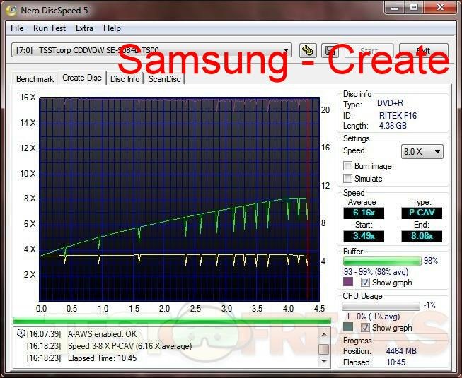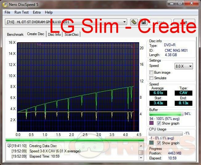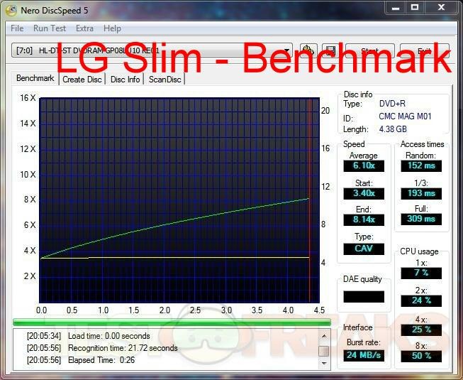 For testing I use Nero DiscSpeed, it’s actually a decent program to benchmark optical drives and to test how long it takes to create or burn a full DVD.