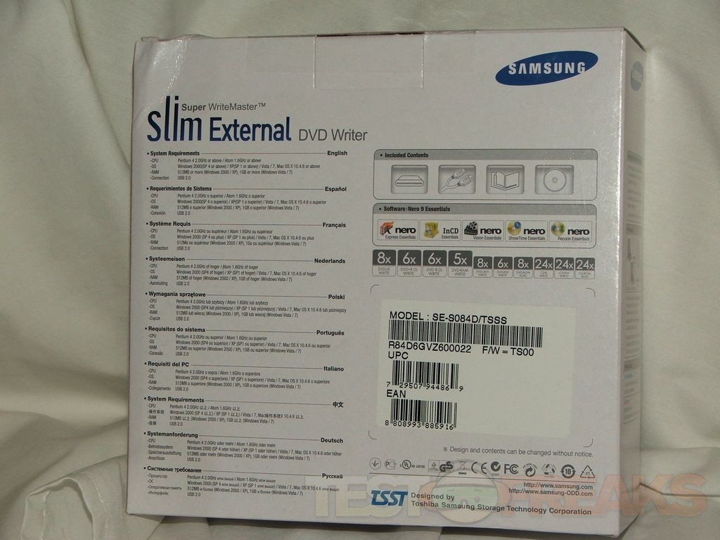 Netbooks are wonderful things truly, they’ve changed the shape of how we think of portable computers but with that portability comes sacrifice. The majority of netbooks out there don’t come with an optical drive, and there are times you need to have one. Sure you could put everything on a USB drive but with movies that would require a lot of work really to rip them etc, so the other option to to get yourself a nice external DVD drive. Today for review I have the newest Samsung external drive called the SE-S084D Super WriteMaster Slim External DVD Writer. It’s very small making it very portable, which is what you want right?! It’s quiet and it’s fairly fast, and it only requires one USB cable to operate. So read on to learn more…