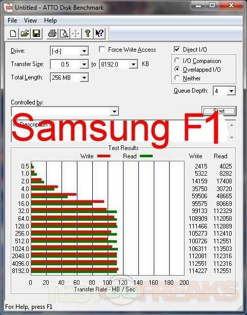 So we’ll start off with ATTO Disk Benchmark, I put them in order of fastest to slowest: