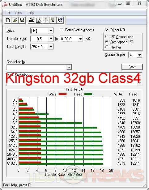 So now I’ve got screen captures and a graph for you. I’ve only got one other 32gb class 4 card on hand and it’s a Kingston.