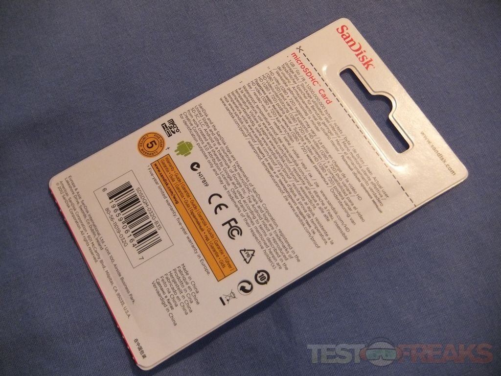 We usually start off with box shots, but it’s a microSD card, so there’s not much to show. The card comes in a cardboard hanger style package with a window showing the card.