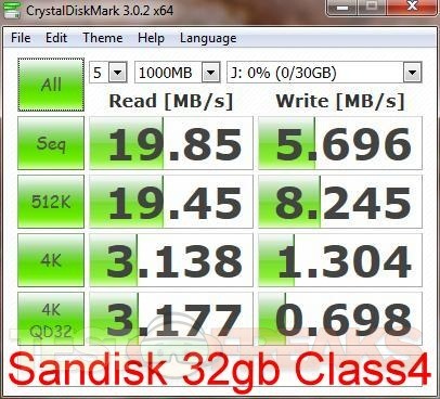 Class 4 cards should get a minimum of 4 MB/sec so the SanDisk 32gb card does go above that, which is very nice.