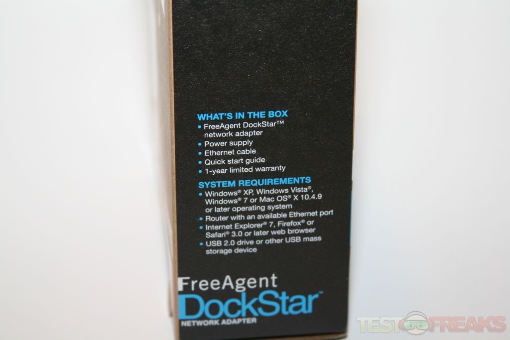 In my reviews of previous Seagate FreeAgent products one of my frequent complaints was about the lack of “green” packaging. In the past Seagate would use plastic clamshells for their drive and docks. Thankfully they addressed this issue with the FreeAgent DockStar and are now using fully recycled packaging. On the outside of the cardboard box we find the Seagate mascot for the Dockstar – an alien cruising around in its spaceship. Seagate lists the features and requirements and the back and sides of the package.