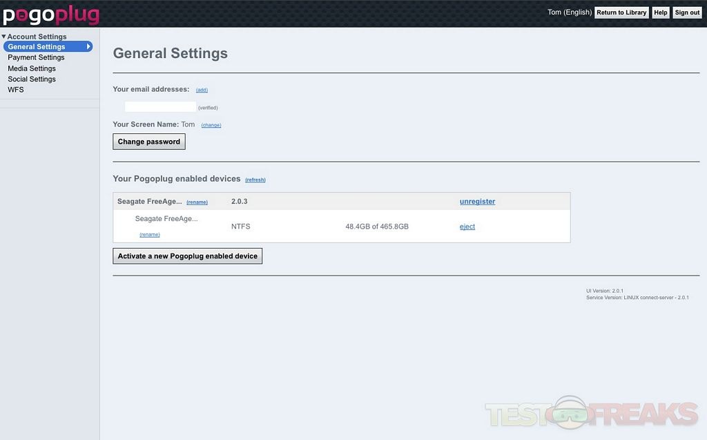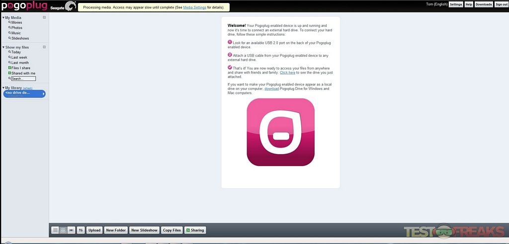 When you first use the Dockstar you’ll need to go to the Seagate activation website to set up a Pogoplug account and enable the Internet functionality; once this is done you can access your device from these addresses: http://dockstar.pogoplug.com or http://my.pogoplug.com. The web interface is the same except for the Seagate versus Pogoplug branding.