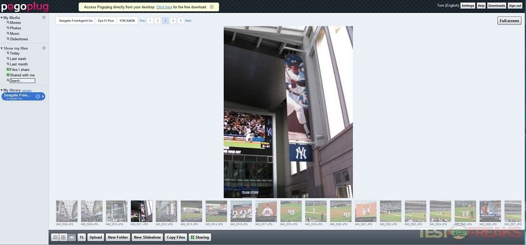 From within the web application you can explore the contents of any attached hard drive, transfer, create shares for other users, play videos and music or look at your photos via a built-in slideshow program. You can explore files via detailed or icons view; for photo viewing there is a photostrip type interface also.