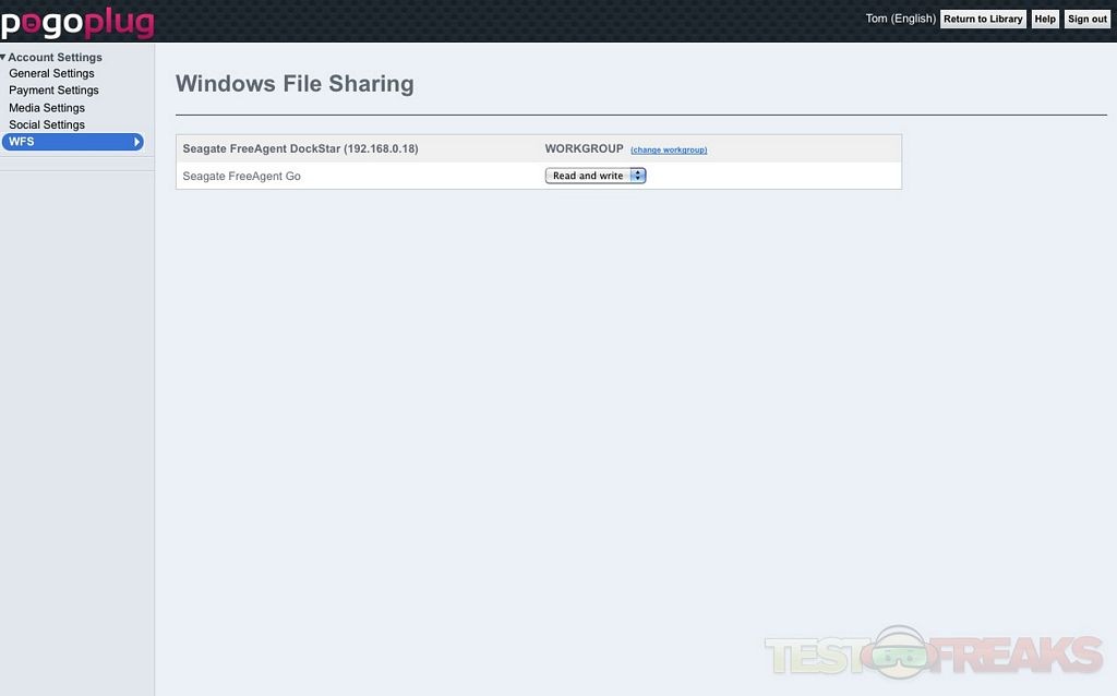 You can also create Windows Workgroup share by heading to the Settings section on the web interface and going to the WFS (Windows File Sharing) section. Here you can rename the Workgroup of the device and check the sharing option to turn it on. Just be aware that this share is not password protected so if you leave it with Read/Write privileges you can have anyone on your network access it and make changes on the connected drives.