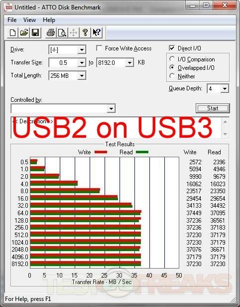 We actually see a slight increase in performance with the USB 2.0 cable on the USB 3.0 interface. The USB 3.0 speeds are similar to other USB 3.0 devices I’ve looked at, so performance is pretty much the same there.