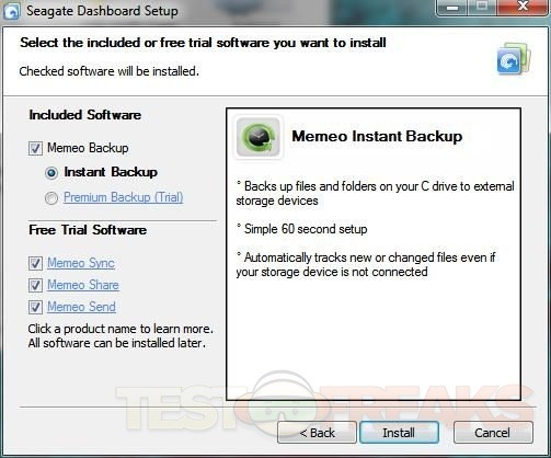 The software itself seems easy to use it shows you the status of the drive at the top, then in the middle is My Applications which include Instant Backup, Memeo Sync, Memeo Share and Memeo Send.