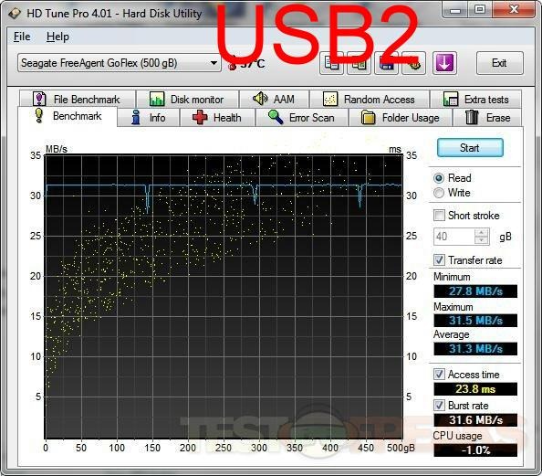 There is no testing for the eSATA cable as I just found out that none of my computers have powered eSATA ports that are required to use the cable. Not many motherboards have powered eSATA ports, so if you’re thinking about getting the eSATA cable for the GoFlex drives then you’ll need to make sure yours does.