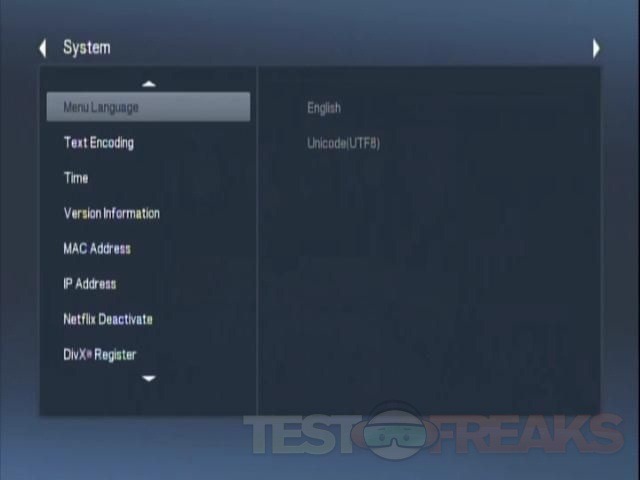In the settings you find that much really. You can activate your Netflix account through it and your Paramount account along with DivX and change some basic settings.